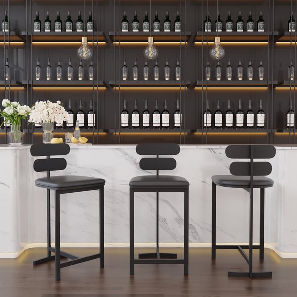 Modern PU Leather Black Counter Stools with Back Breakfast Kitchen Counter Stool